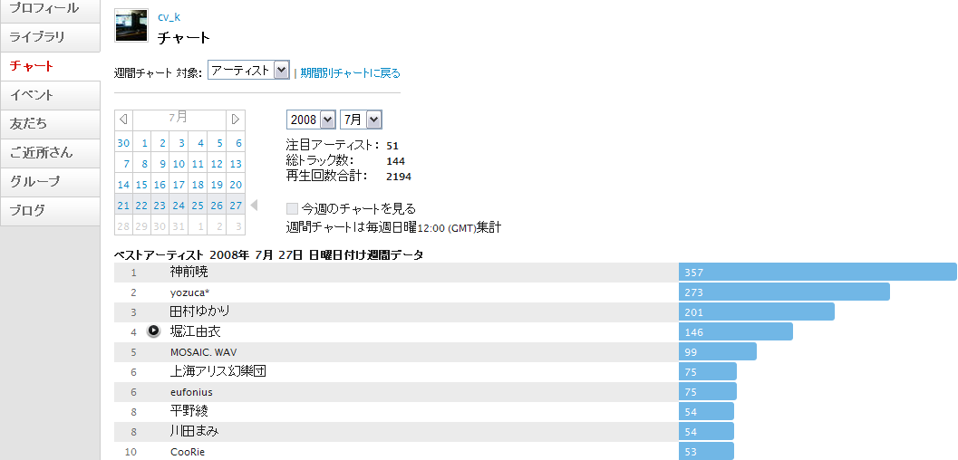 ¡¦last.fm¤Î½µ´Ö¥¢¡¼¥Æ¥£¥¹¥È¤¬¥È¥Ã¥×¤«¤é¸«¤ì¤Ê¤¯¤Ê¤Ã¤¿·ï